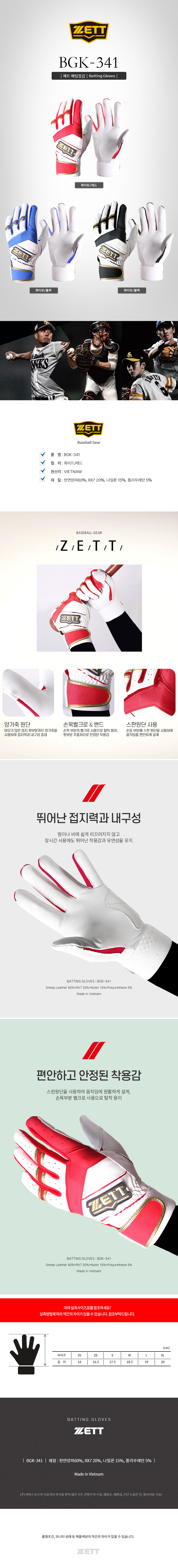 야구 배팅장갑 BGK-341 (화이트/레드)