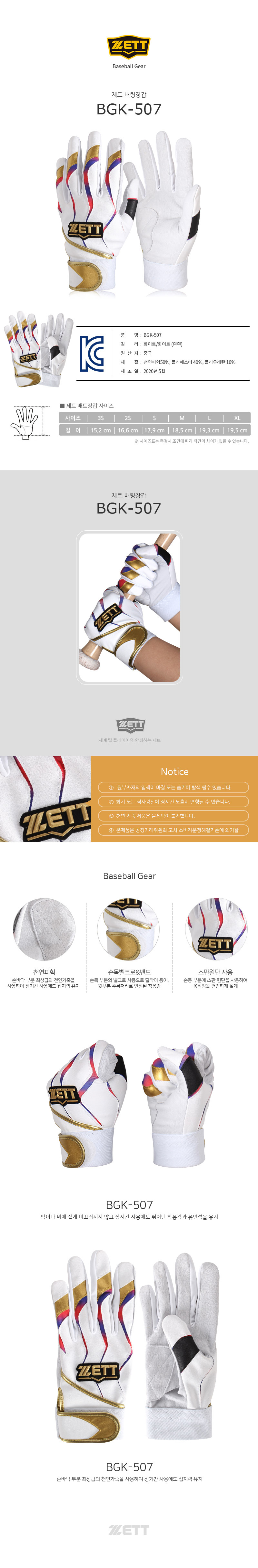 야구 배팅장갑 BGK-507 (화이트/화이트)