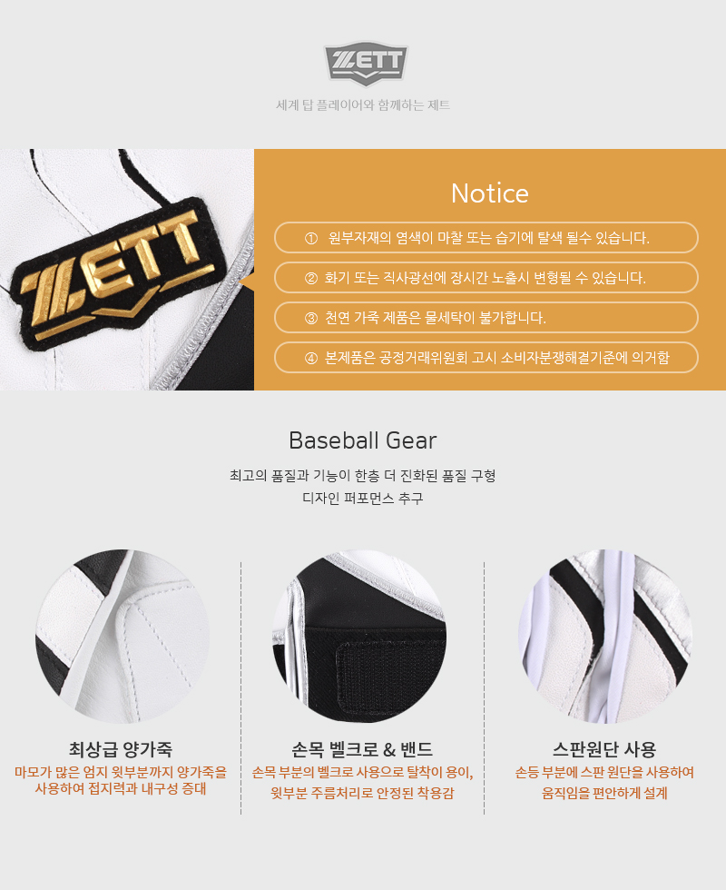 제트(ZETT)는 `오직 품질만으로 승부한다`라는 경영철학을 가진 100여 년 역사를 가진 브랜드입니다. 소재의 선택부터 모든 공정까지 조그마한 실수도 용납하지 않는 꼼꼼한 장인정신으로 세계 최정상 퀄리티의 제품을 선보입니다. 최고의 포지션을 가리는 골든글러브 시상식의 공식 파트너로서 한국야구와 20년 넘게 함께하고 있습니다.