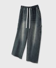 빈티지 캣워싱 와이드 카펜터 데님 밴딩 팬츠_3COLOR