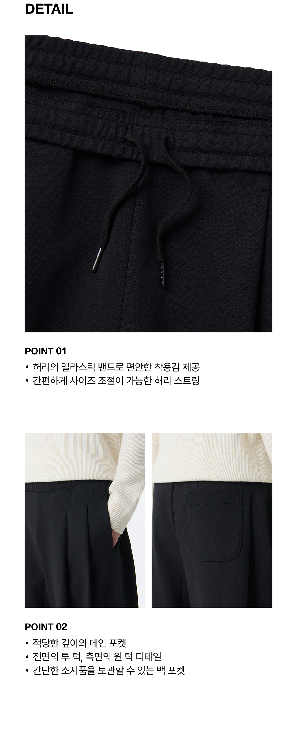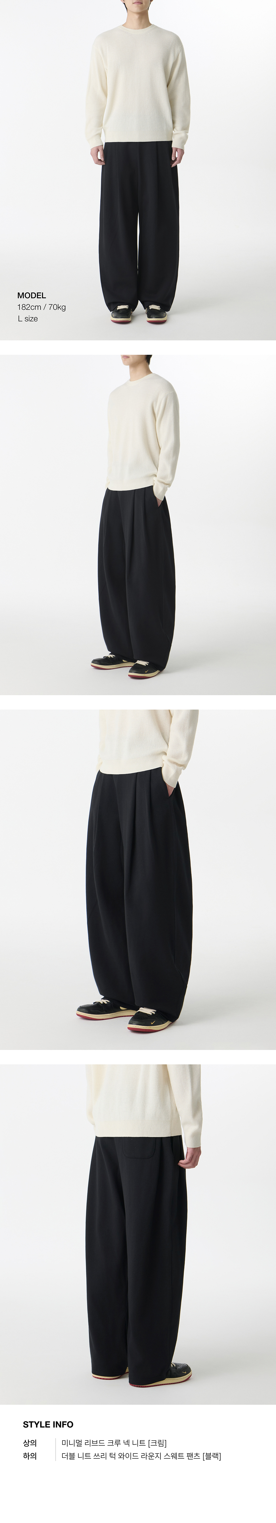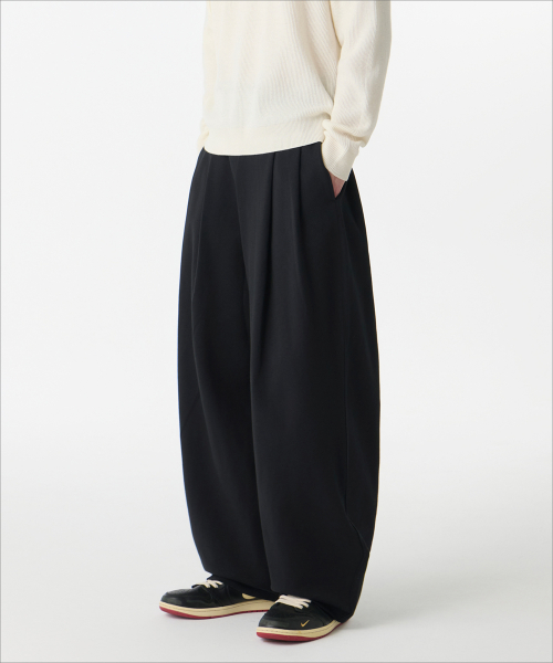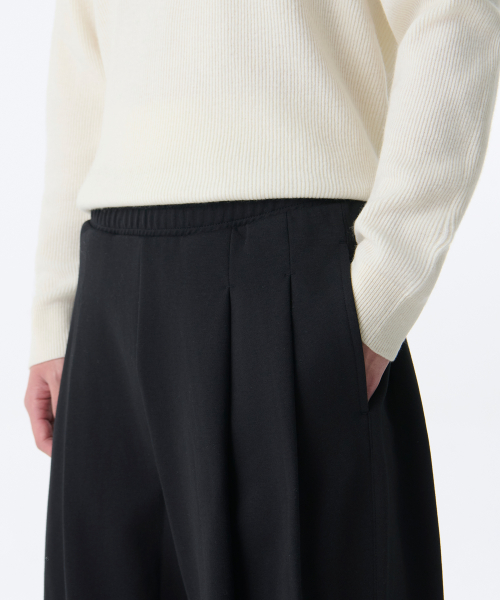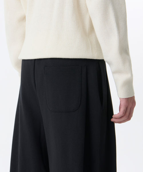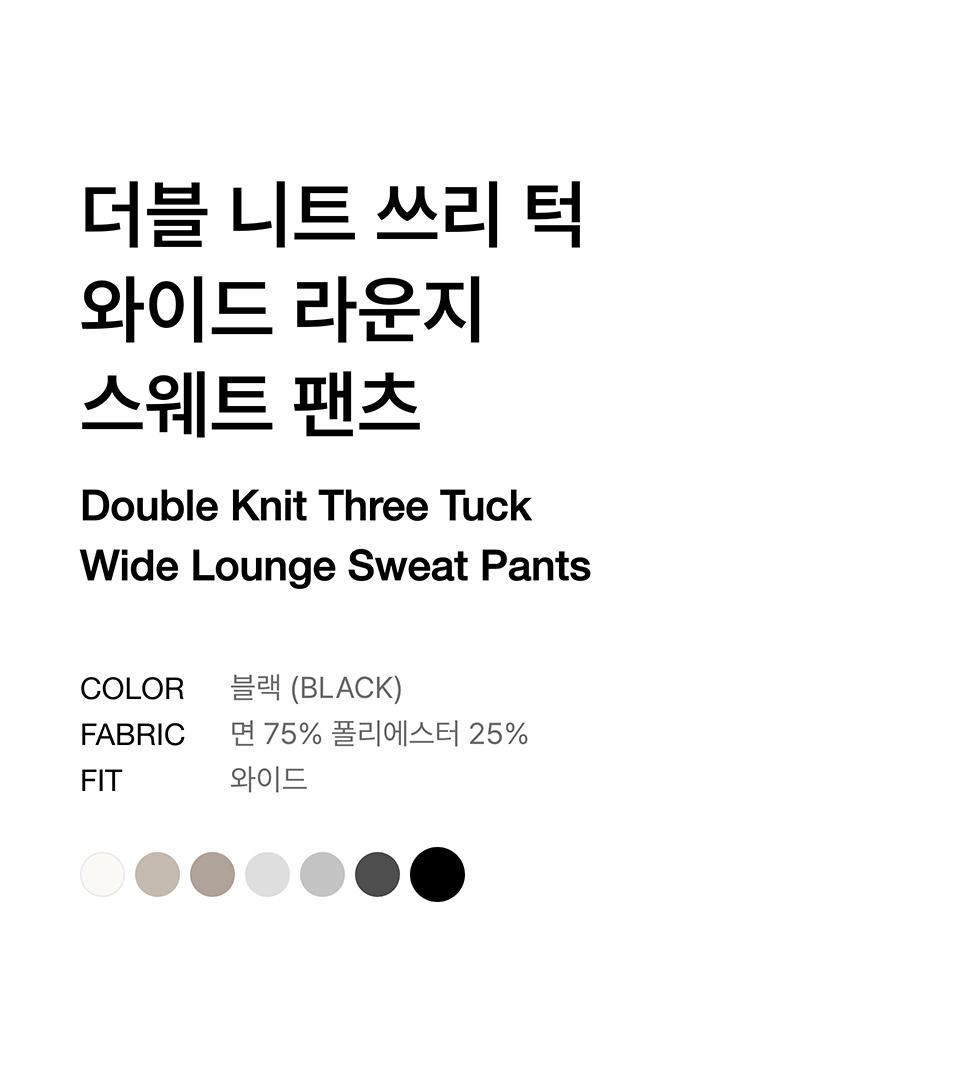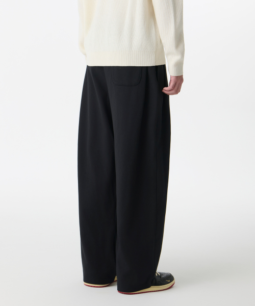 더블 니트 쓰리 턱 와이드 라운지 스웨트 팬츠 [블랙]