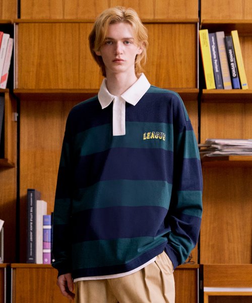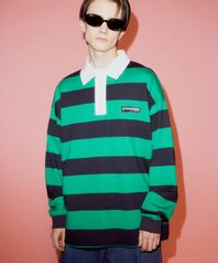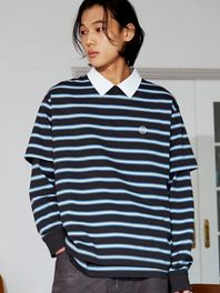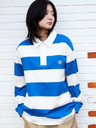 스트라이프 롱슬리브 럭비 셔츠(블루)