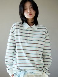 핀스트라이프 롱슬리브 카라 티셔츠(아이보리)
