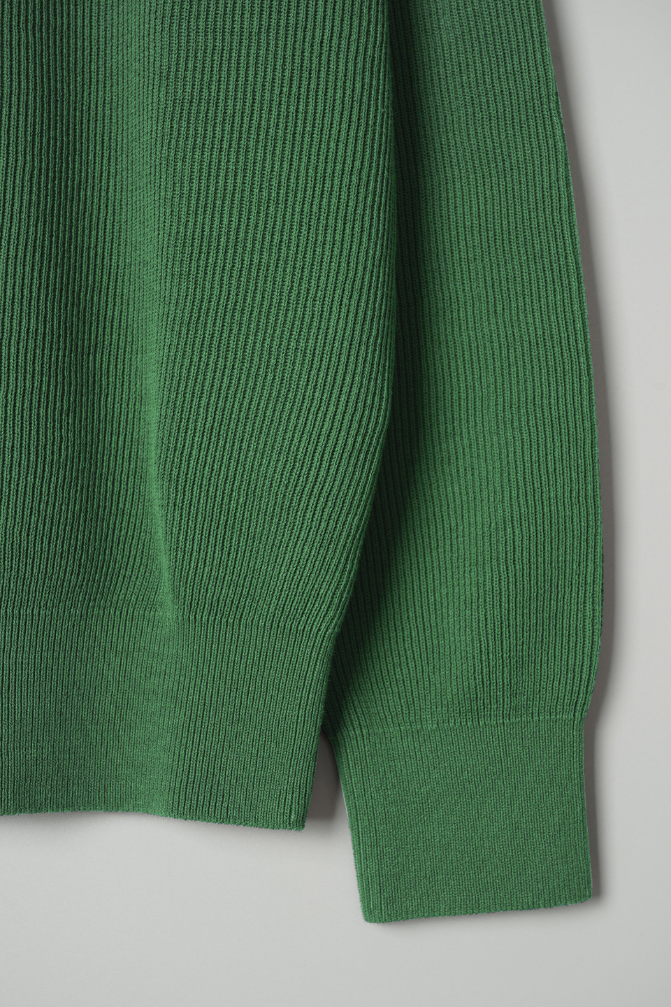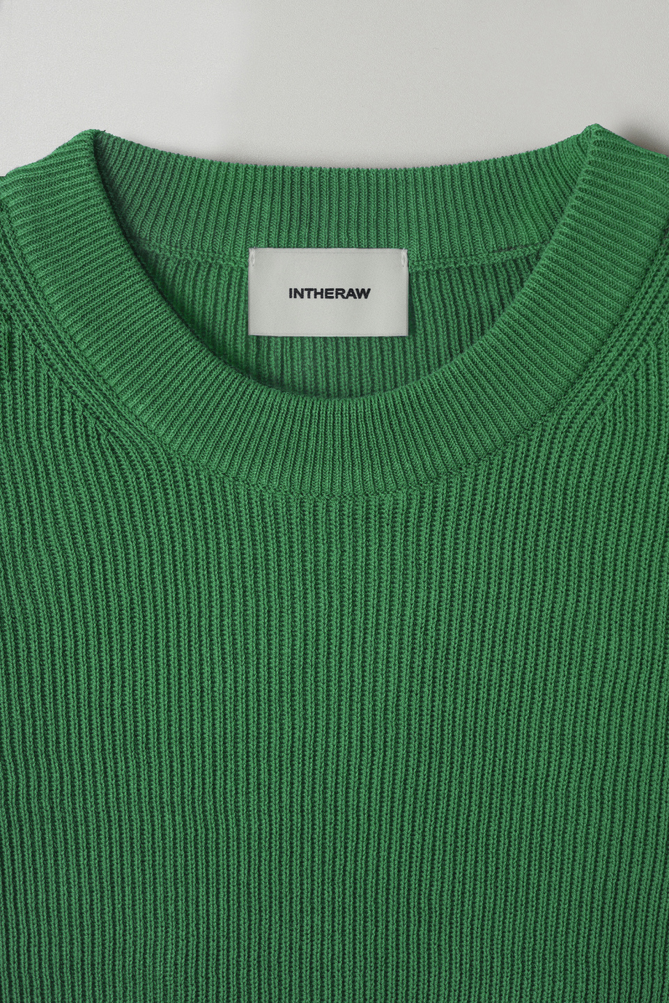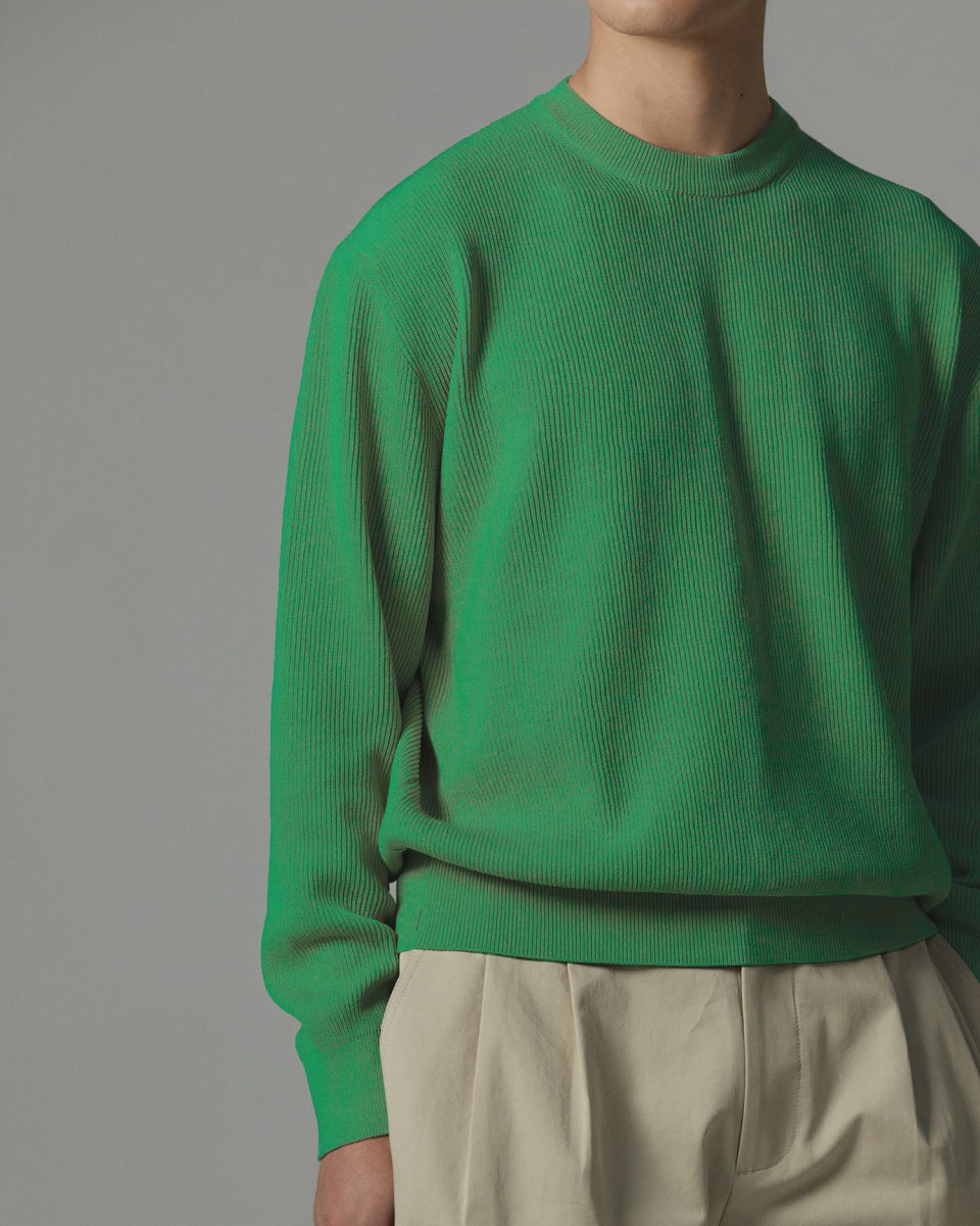 촘촘하게 이중으로 짜여진 RIB조직은 편직의 난이도와 시간이 일반적인 조직에 비해 2배 가량의 시간이 소요되는 고난이도의 작업이며 텍스쳐의 질감이 돋보이는 것이 특징입니다.