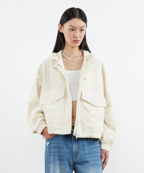 (우먼) 유틸리티 2-WAY 크롭 자켓_클라우드 크림