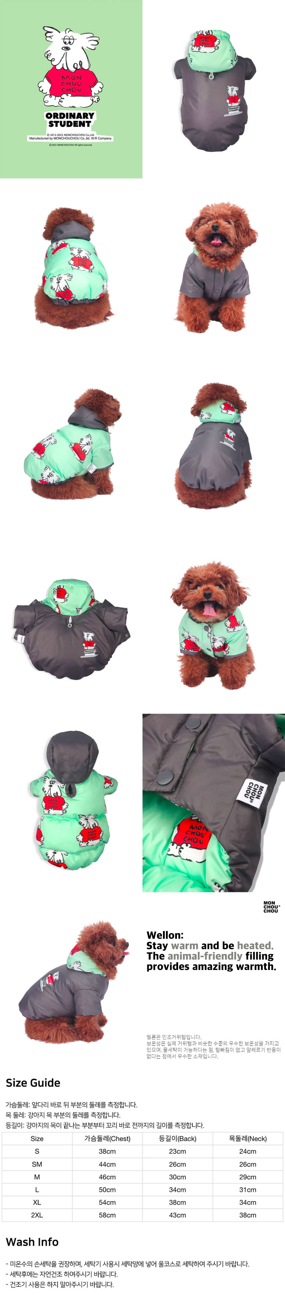 겉감원단은 발수 코팅이 되어있어 눈, 비에 강하며 등에는 리드줄을 뺄수 있는 구멍이 있어, 두꺼운 자켓을 입을때에도 하네스/목줄 착용이 가능합니다.