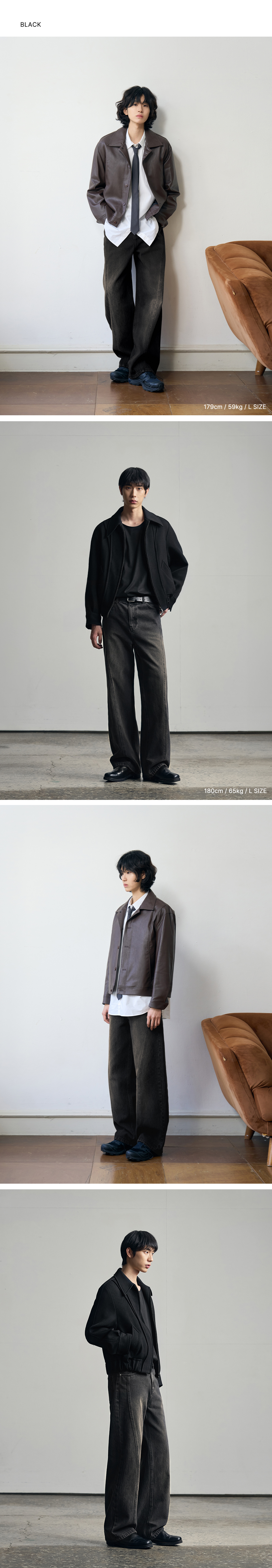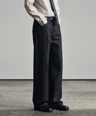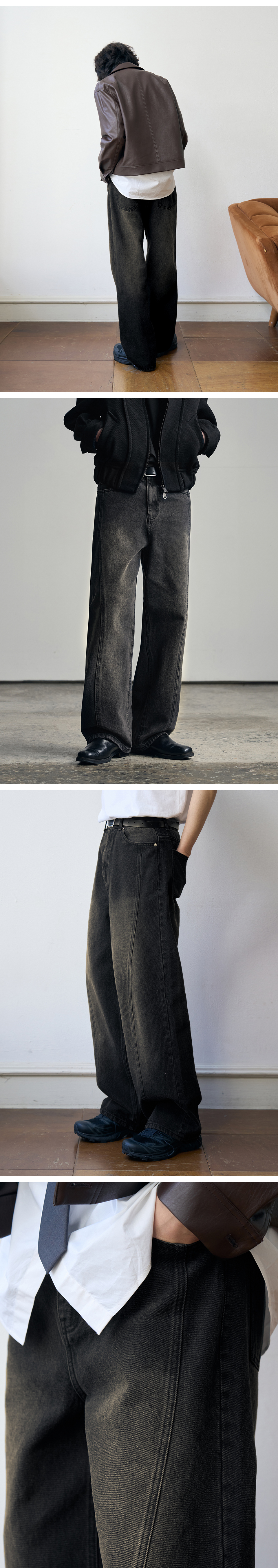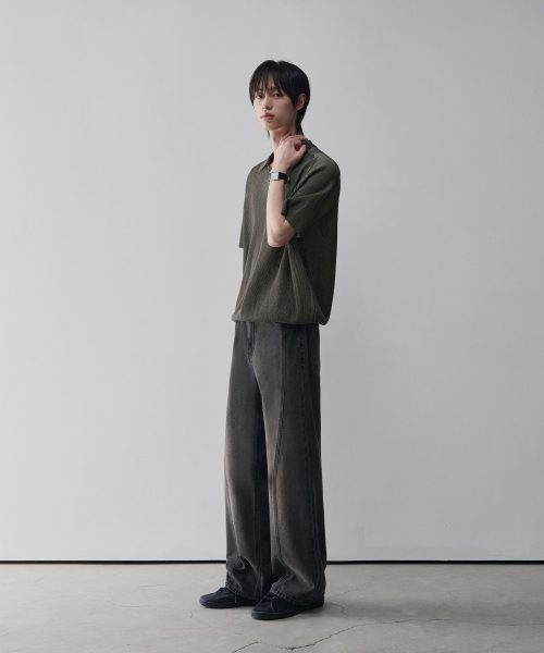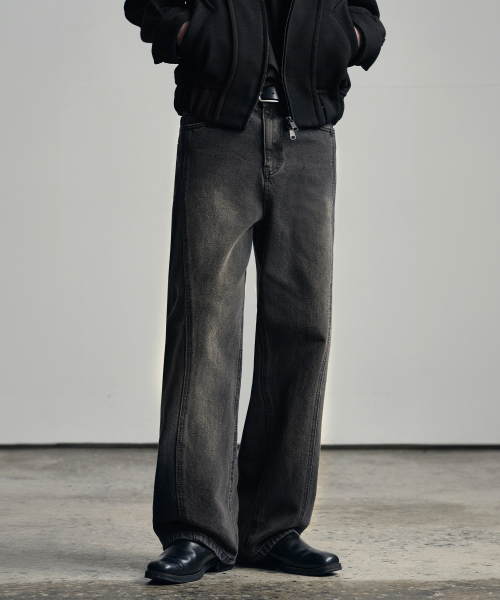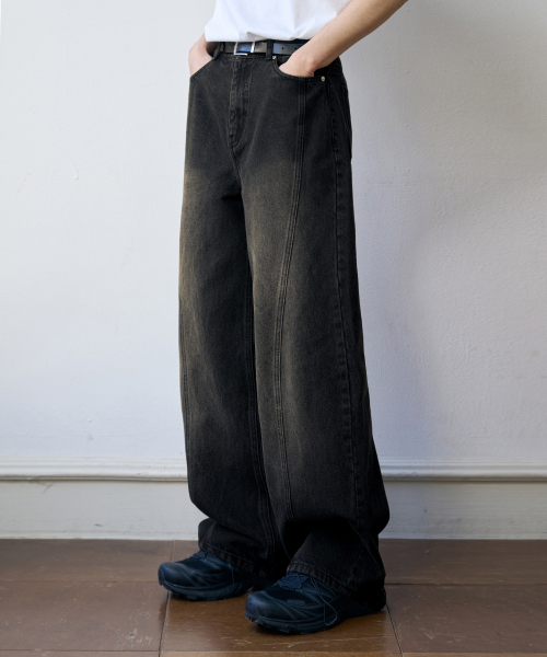 웨이비 커브드 와이드 데님 팬츠 [RAW BLACK]