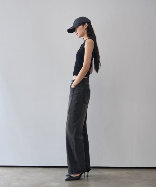 웨이비 커브드 와이드 데님 팬츠 [BLACK]