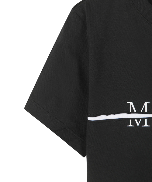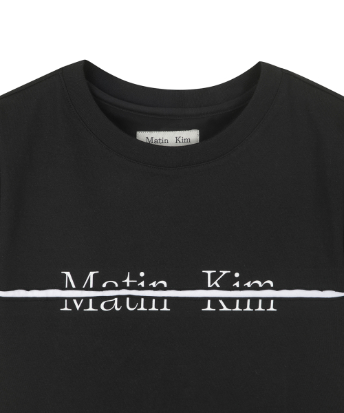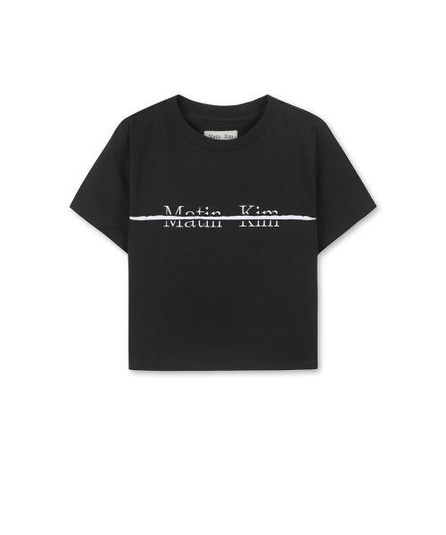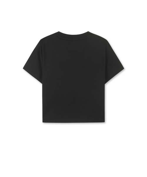 가슴 부분 절개 배색과 로고 프린트가 포인트인 크롭 티셔츠