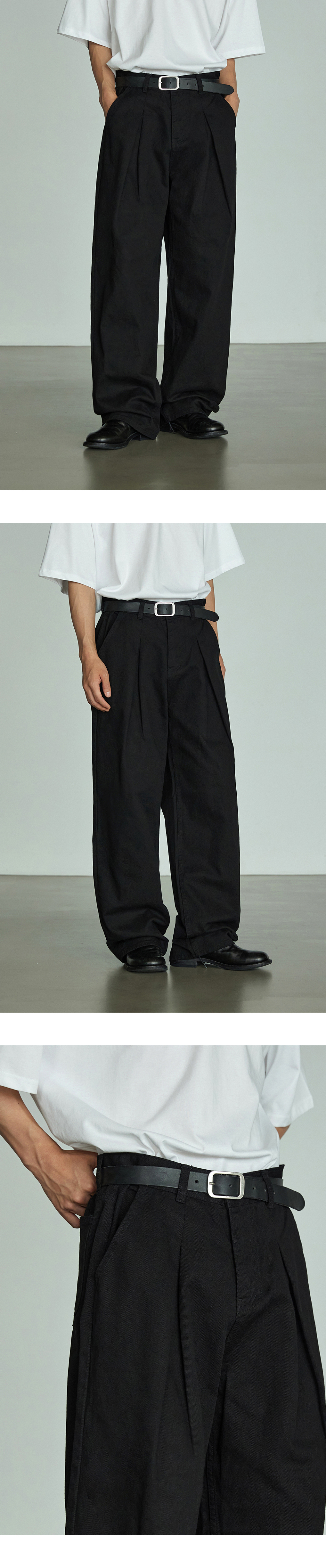 776 코튼 원턱 와이드 팬츠 - 블랙