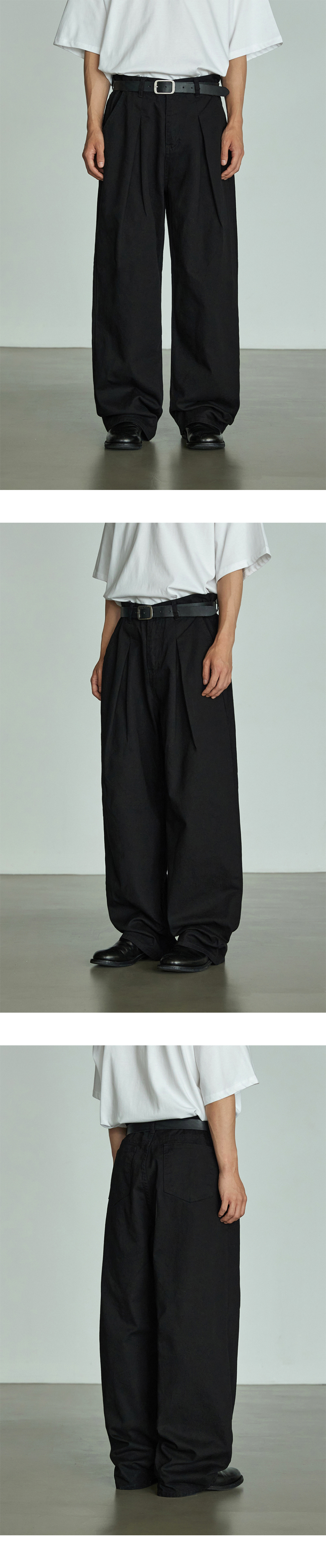 원턱 와이드 코튼 팬츠[블랙]