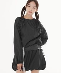 NYLON SHIRRING WARM UP CREW (CHARCOAL)