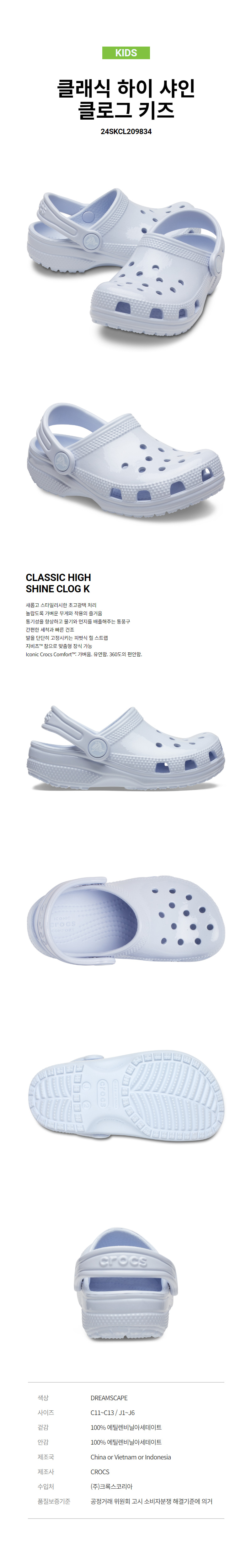 키즈 클래식 하이 샤인 클로그 DRS (24SKCL209834)