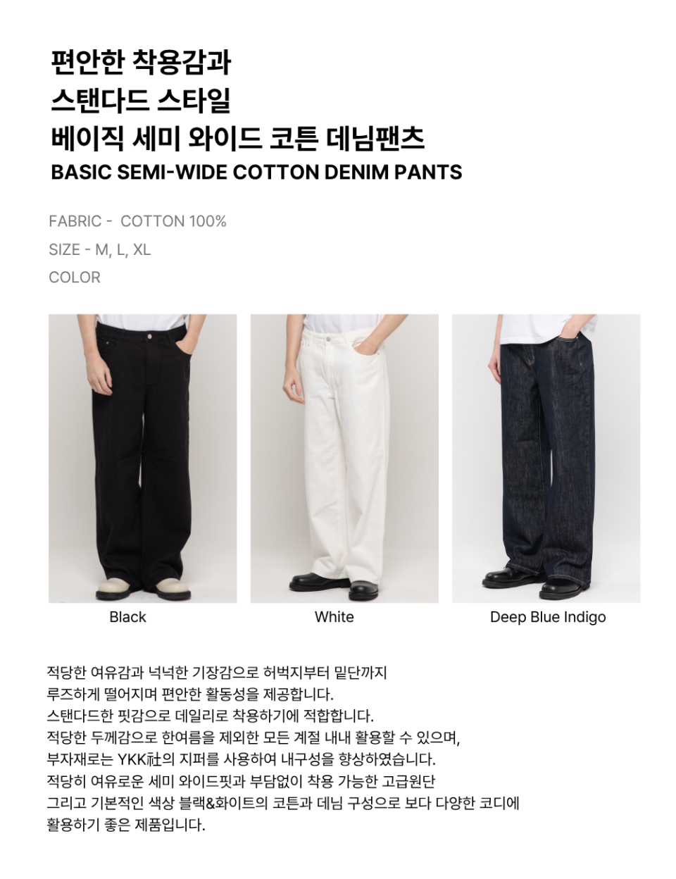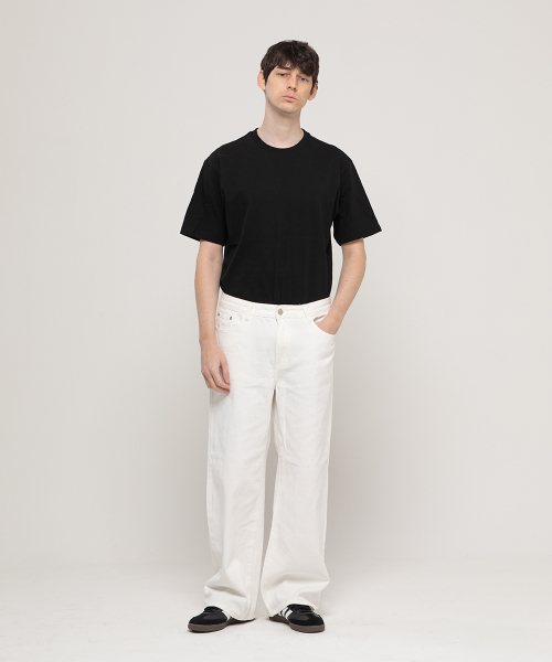 논페이드 베이직 세미 와이드 코튼 데님팬츠[화이트]