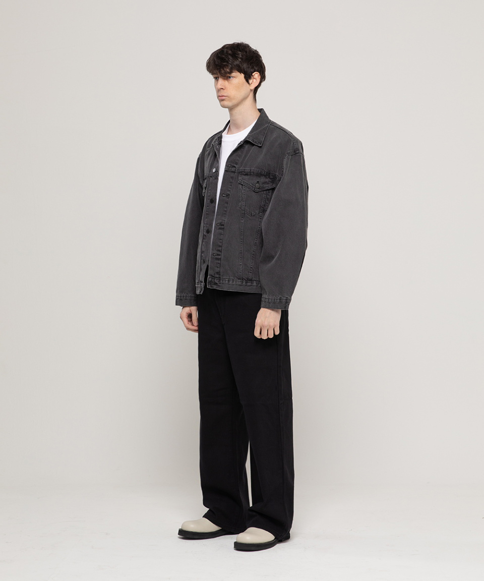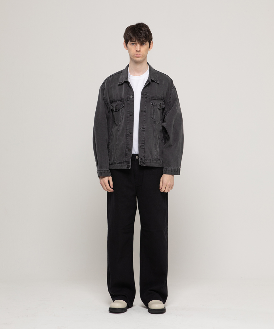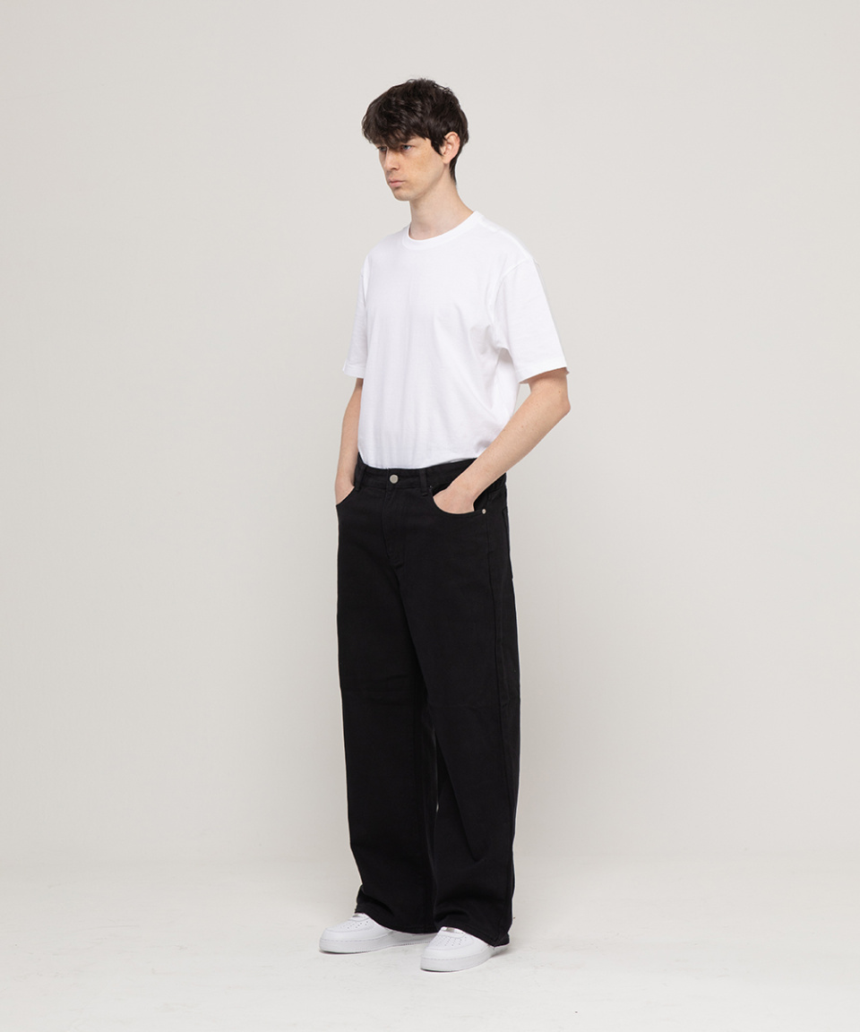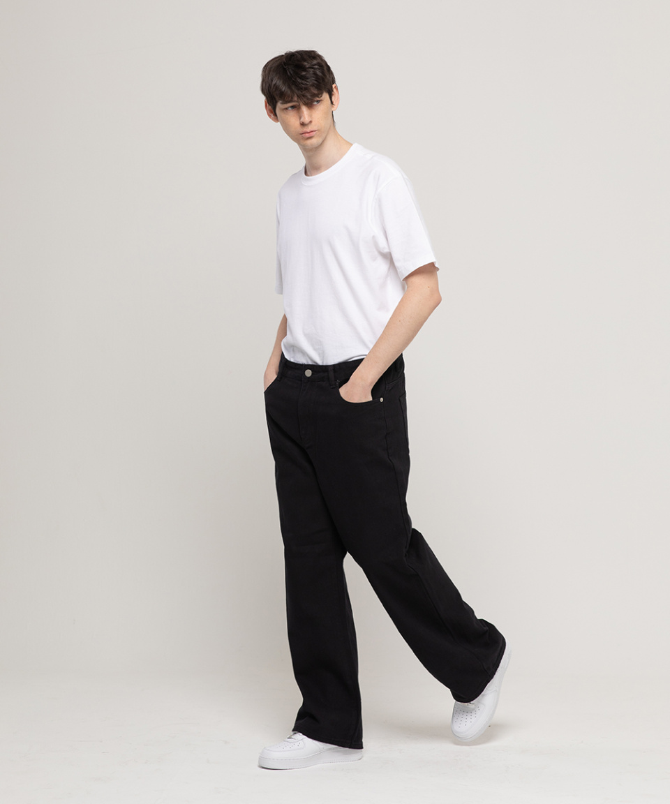 논페이드 베이직 세미 와이드 코튼 데님팬츠[블랙]