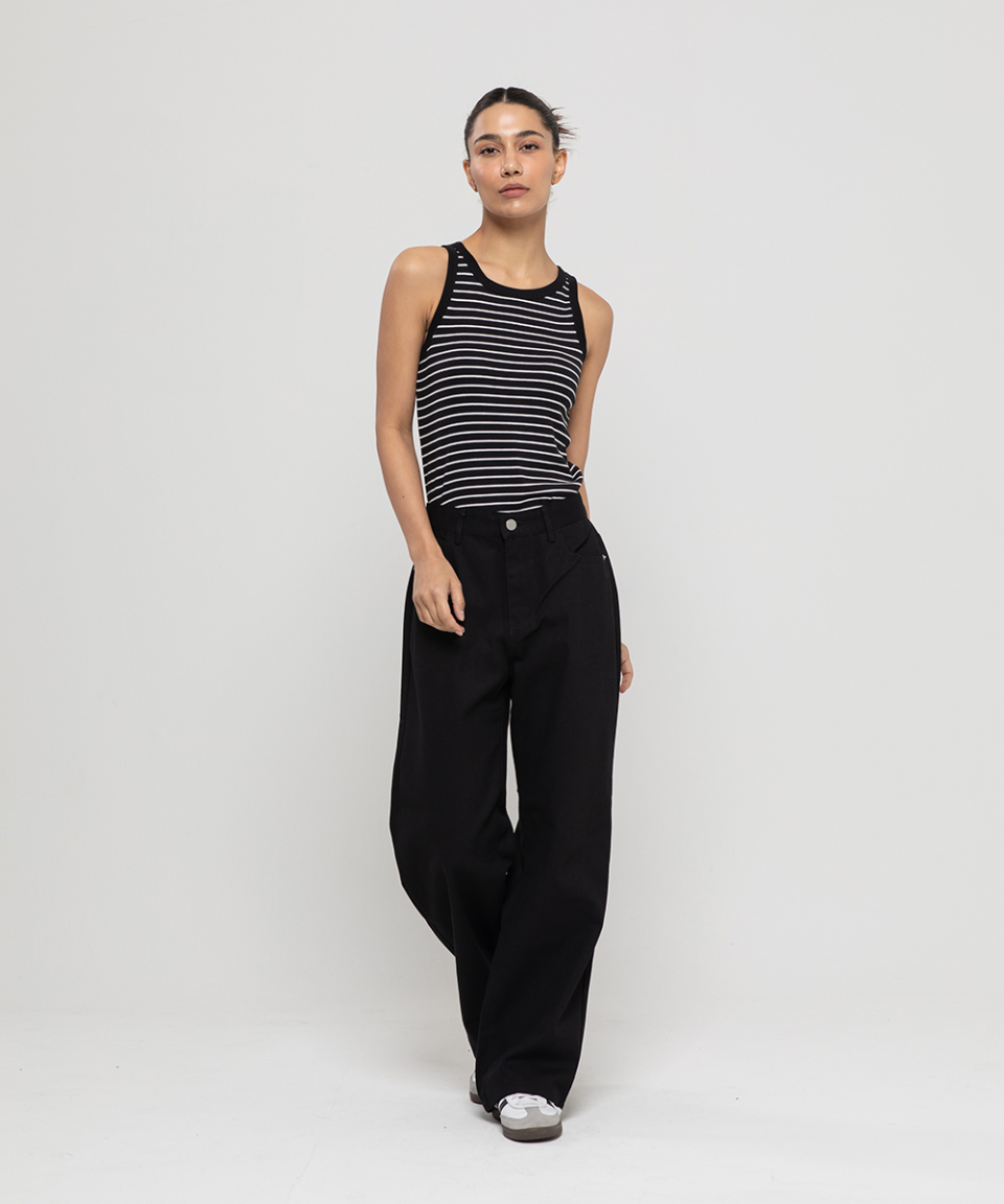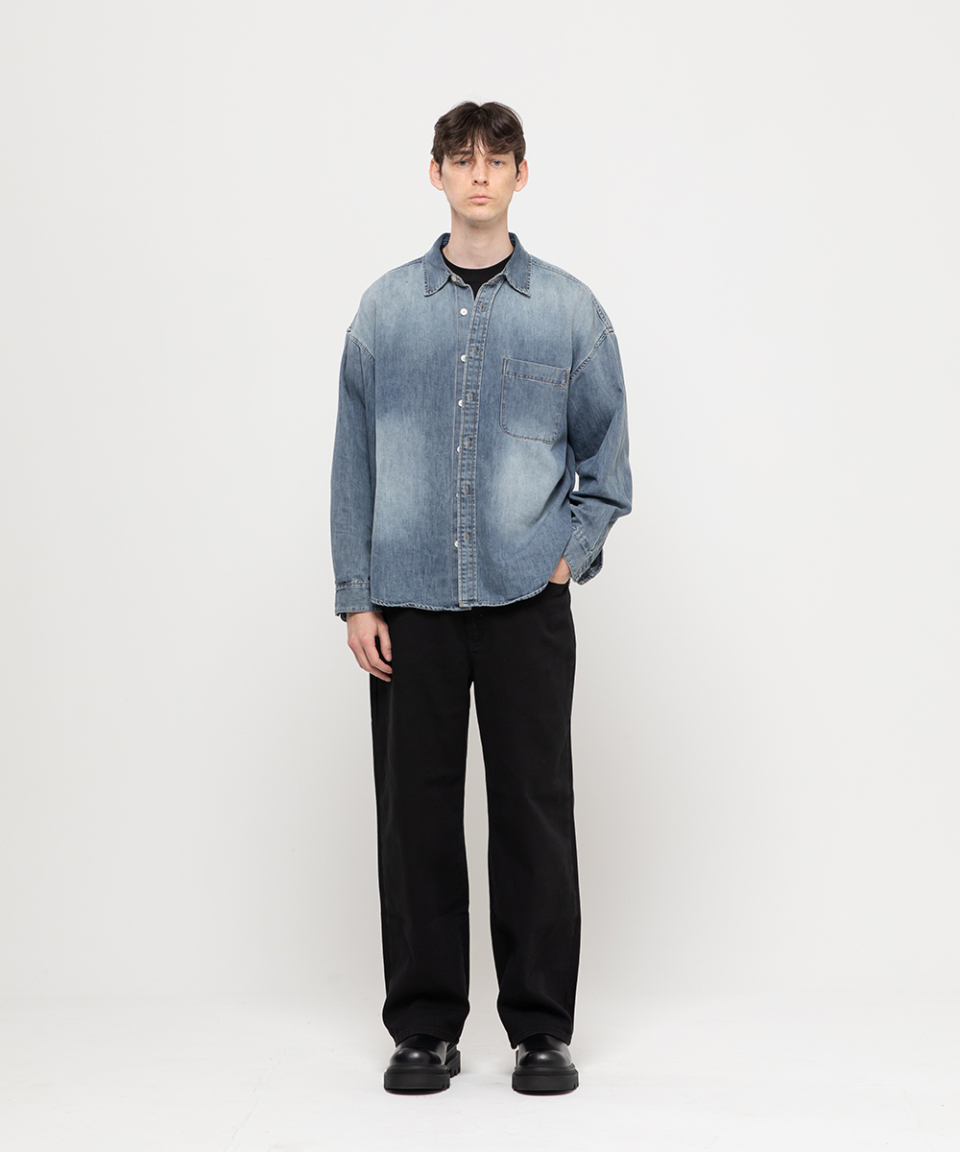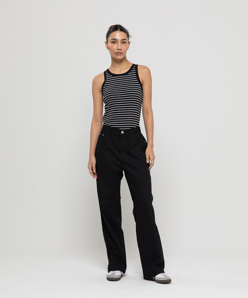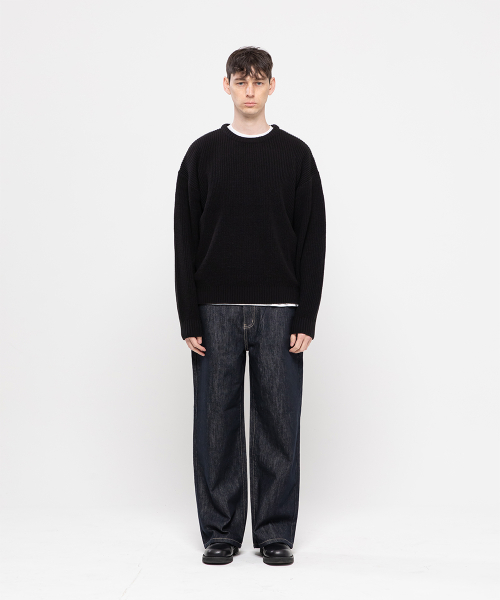 논페이드 베이직 세미 와이드 코튼 데님팬츠[블랙]