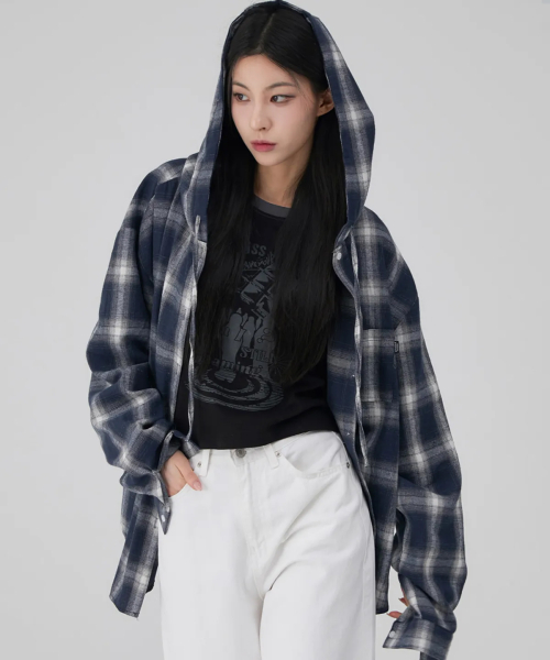 타탄 체크 후드 셔츠 3color
