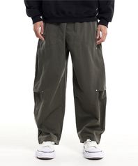 와이드 절개 리벳 포인트 밴딩 팬츠 카키