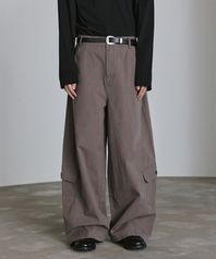 레이어 커브드 카고 팬츠 - 카키브라운