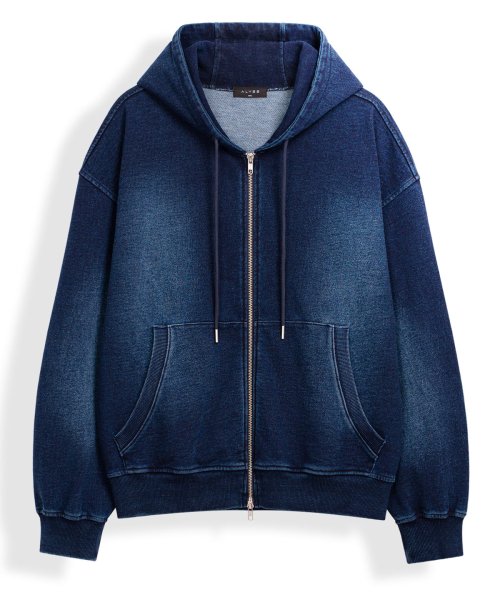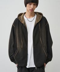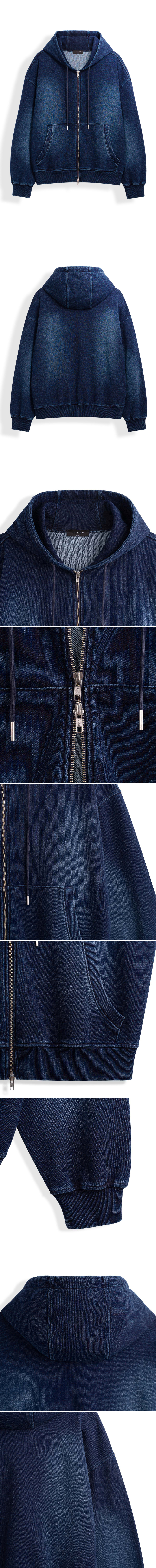 데님 스웻 내츄럴 후드 집업 [빈티지 블랙]