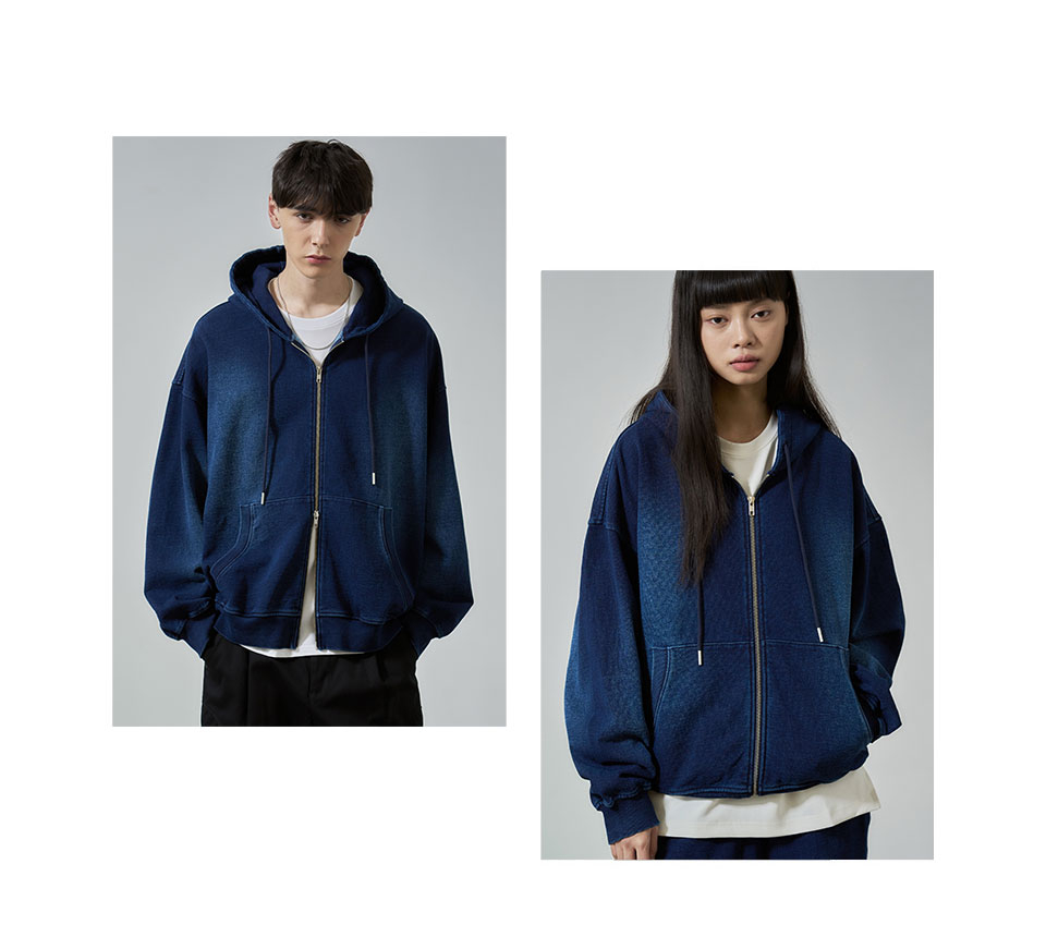 플레인 피그먼트 스웻 후드 집업 [딥블루]