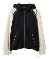 더블 라인 컬러 믹스 후드 집업 [블랙]