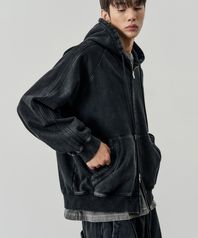 이레틱 피그먼트 다잉 트랙 후드 집업 [워시드블랙]