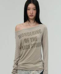 오버핏 시스루 오프숄더 프린팅 롱슬리브 티셔츠 _ 2COLOR