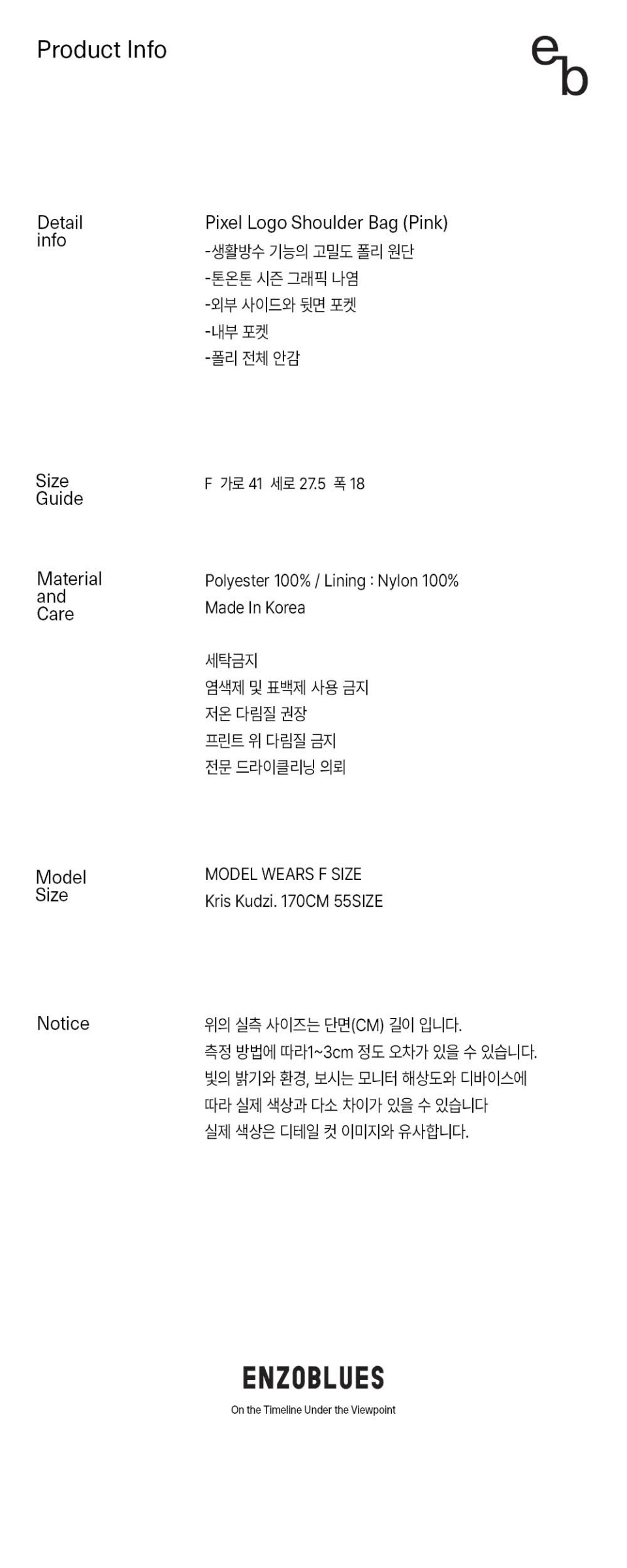 엔조블루스(ENZOBLUES)는 개성 있고 솔직 담백한, 아마추어적 감성의 캐주얼 브랜드입니다. 보통의 말들로 써 내려간 평범하고도 특별한 젊은 날의 스타일을 선보입니다.