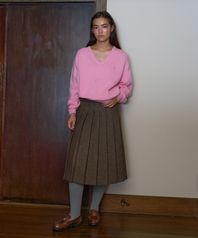 CHECK PLEATED MIDI SKIRT BROWN