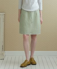 GINGHAM CHECK MIDI SKIRT_OLIVE