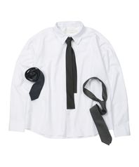 (TIE SET)Semi Cropped Dart Cotton Shirt [WHITE]_SESH025WHITE