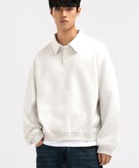 데일리 버튼 카라 맨투맨 화이트멜란지