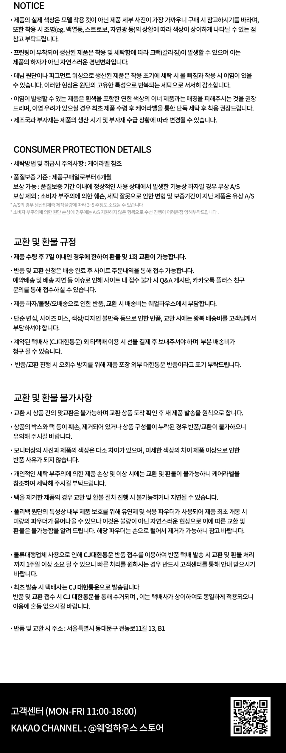 위 내용으로의 사유로는 제품 자체의 불량이라 판단되기 어려우며 교환 및 반품이 불가능하오니 구매 시 참고 부탁드립니다.