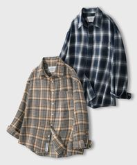 오버핏 플란넬 포켓 체크 셔츠_4COLOR
