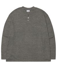 HENLEY NECK KNIT LONG SLEEVE - CHARCOAL