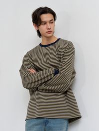 UNISEX 베이직 스트라이프 롱 슬리브 티 [OLIVE] / SBE1U01005
