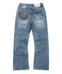 Patched Pocket Semi Flare Denim Pants (BLUE)