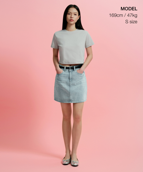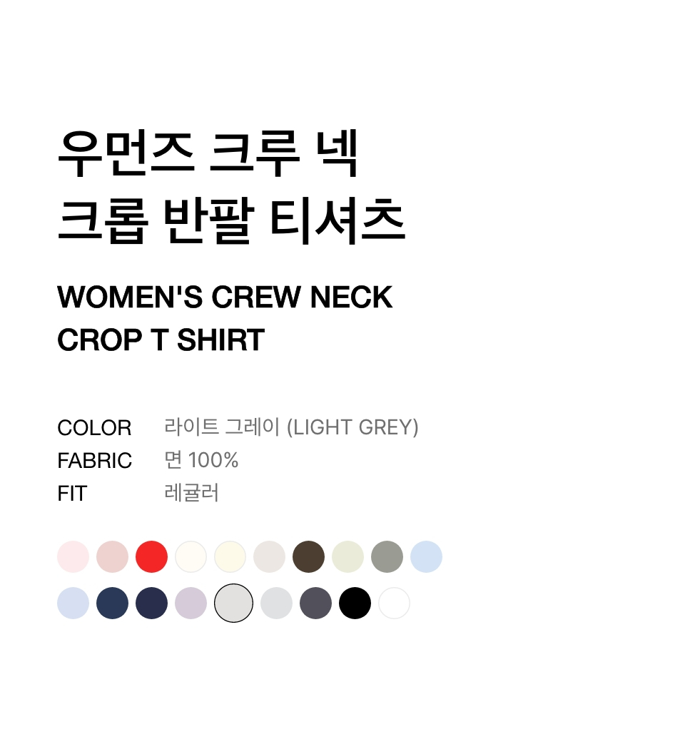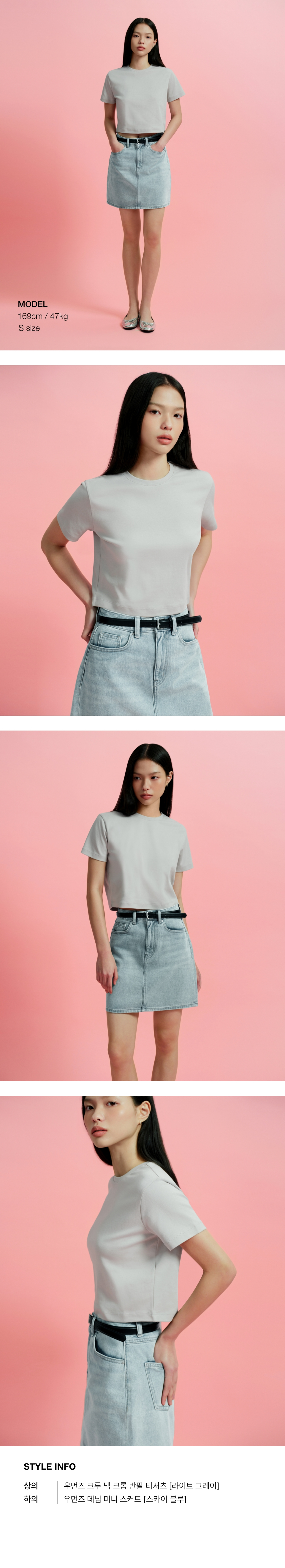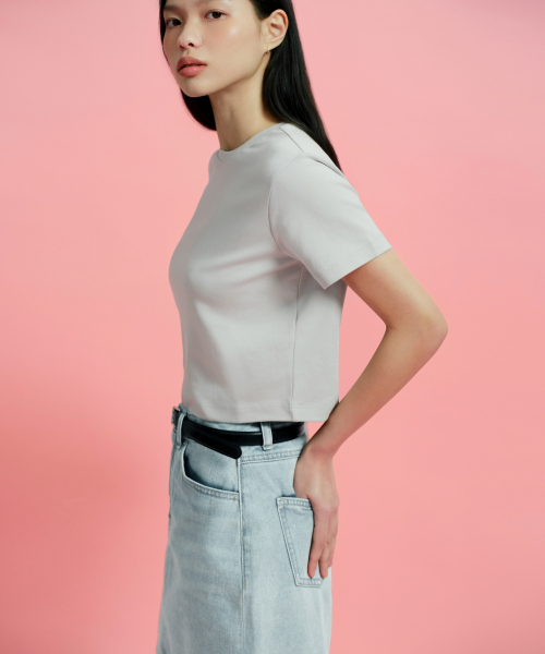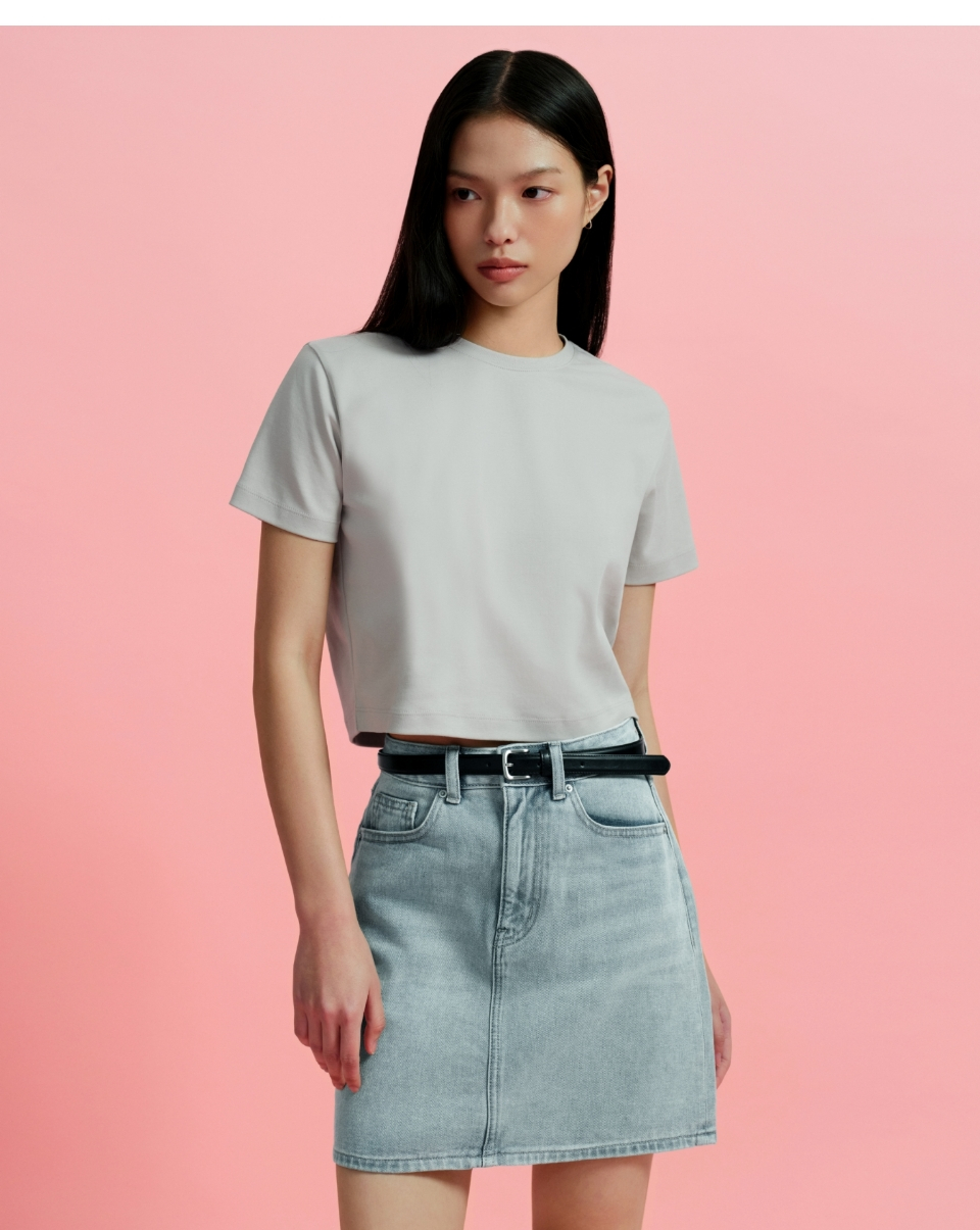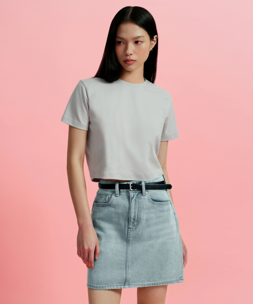 우먼즈 크루 넥 크롭 티셔츠 [라이트 그레이]