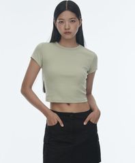 우먼즈 슬림 크롭 크루 넥 티셔츠 [페일 그린]
