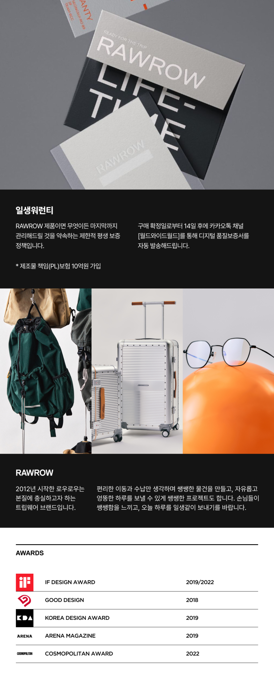 로우로우(RAWROW)는 방황하는 이들을 위해 집 떠날 때 필요한 트립웨어를 디자인하는 브랜드입니다. 날것의 본질만 남겨둔 제품에 집중하여 오래 사용할 수 있는 트렁크와 가방 등을 선보입니다.