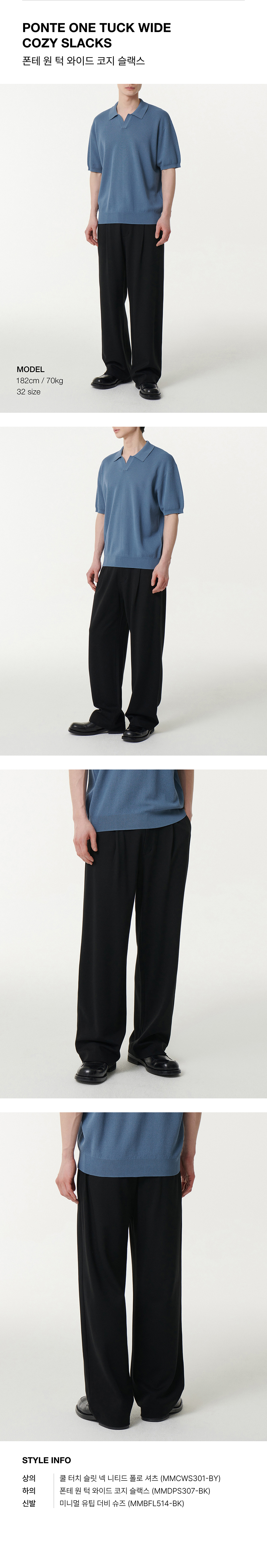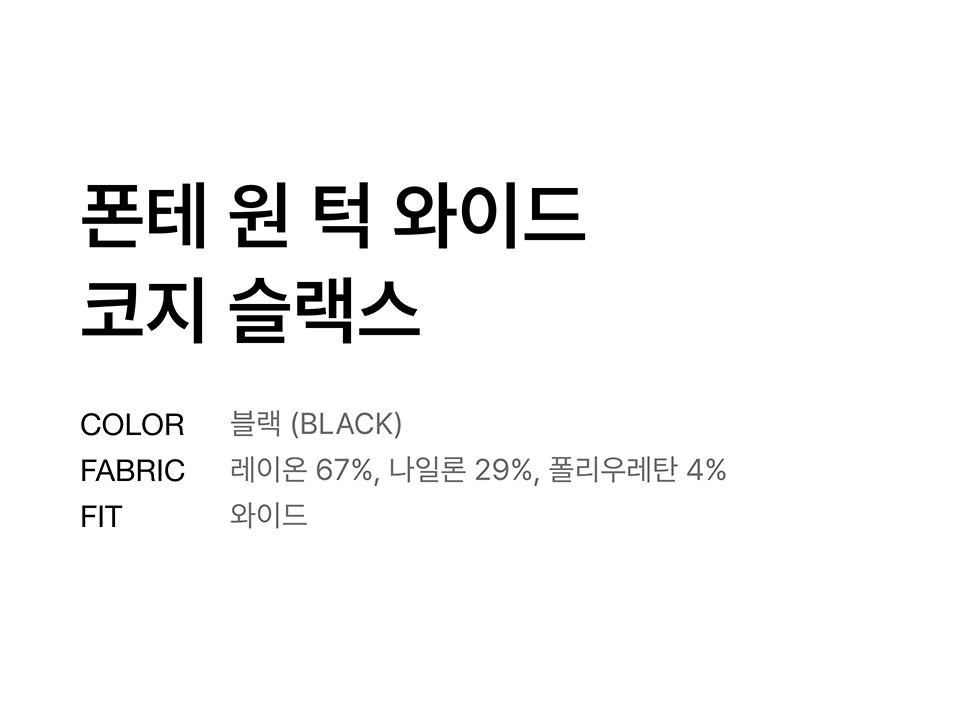 폰테 원 턱 와이드 코지 슬랙스 [블랙]