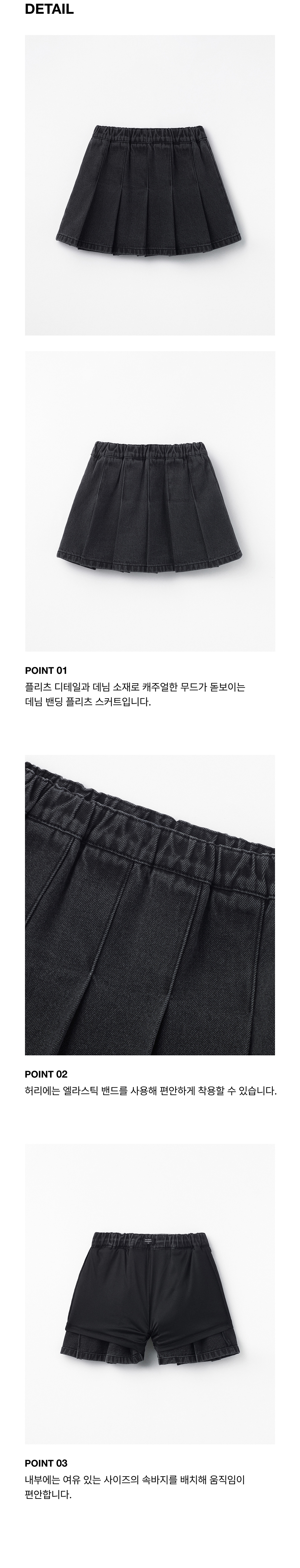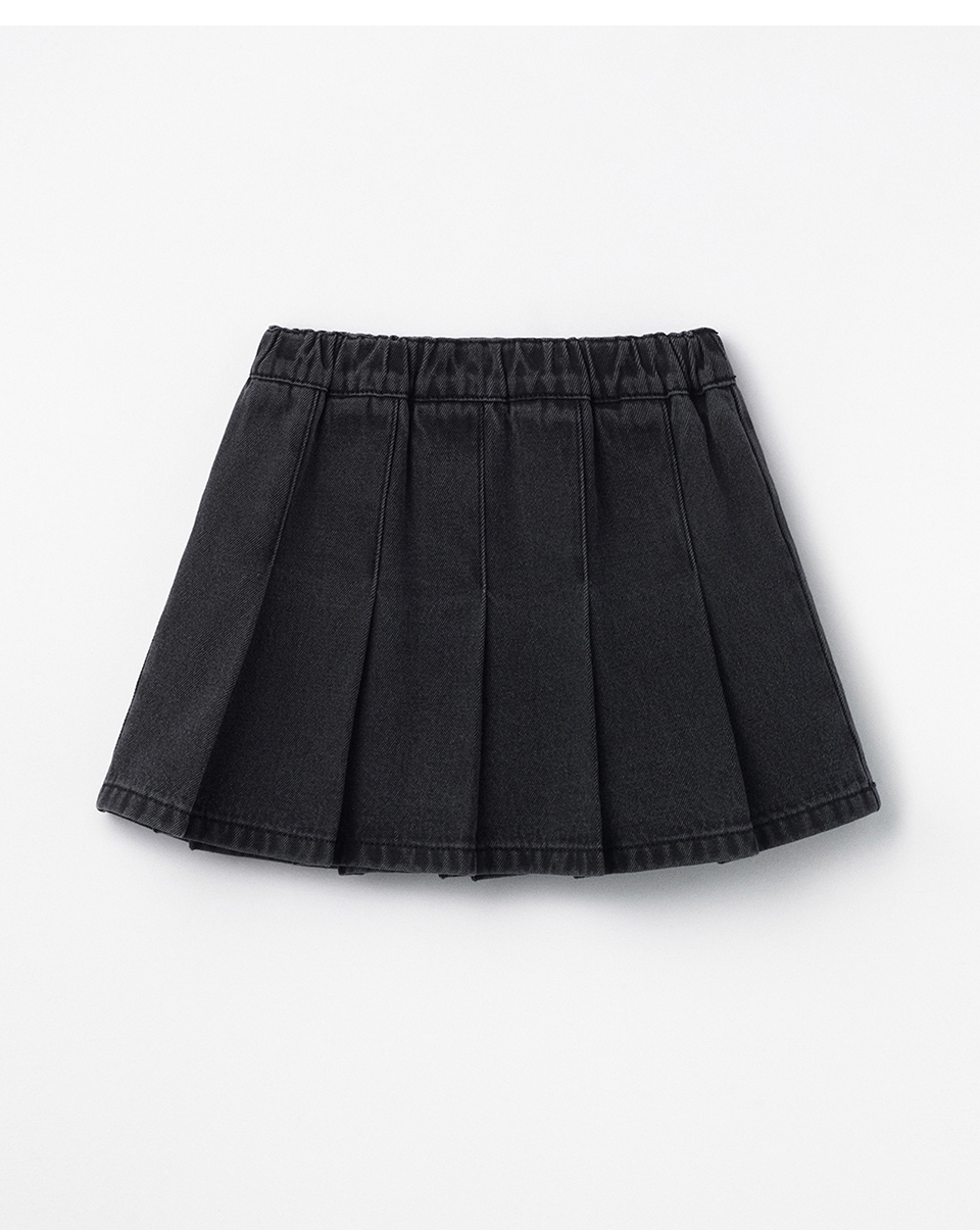 데님 밴딩 플리츠 스커트 [워시드 블랙]