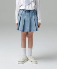 데님 밴딩 플리츠 스커트 [라이트 인디고]