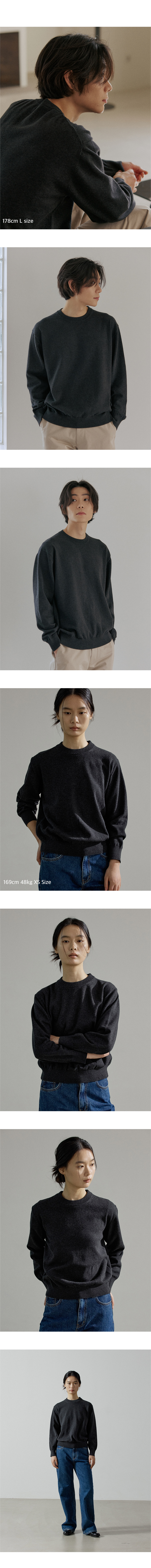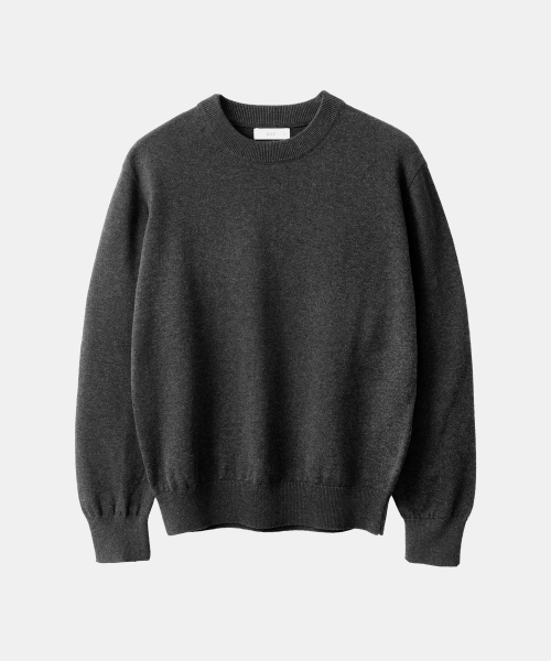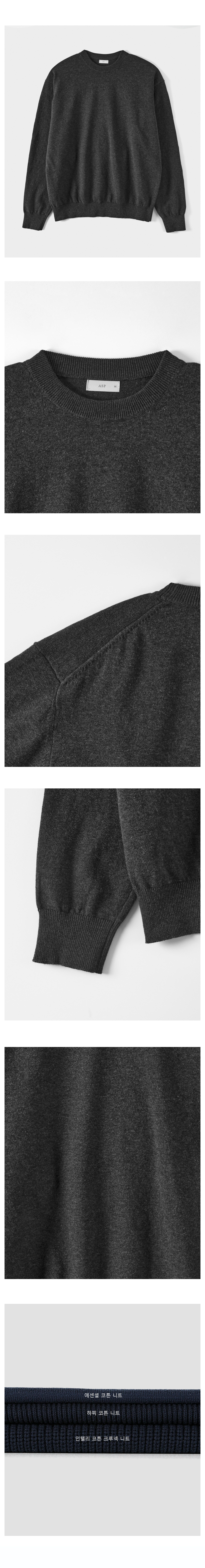 에센셜 코튼 크루넥 니트 멜란지 차콜