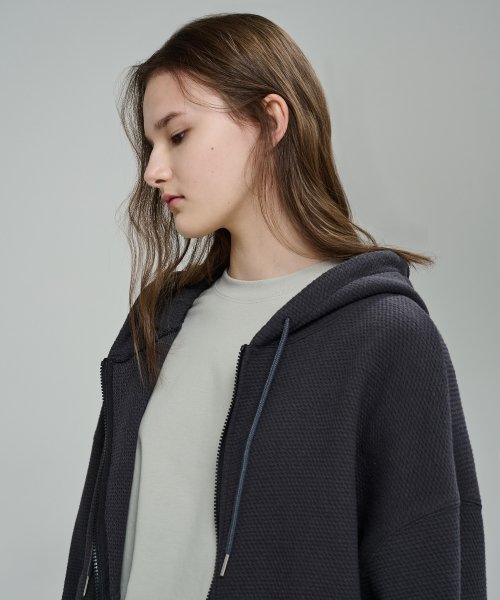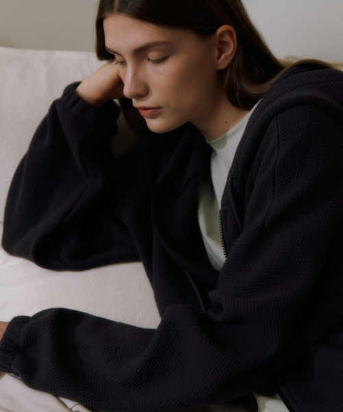 -적당히 크롭한 기장에 밑단은 밴딩 처리되어 블루종 되는 스타일로 전형적인 후디 자켓보다는 스타일리시하며 활동하기에도 편안합니다.