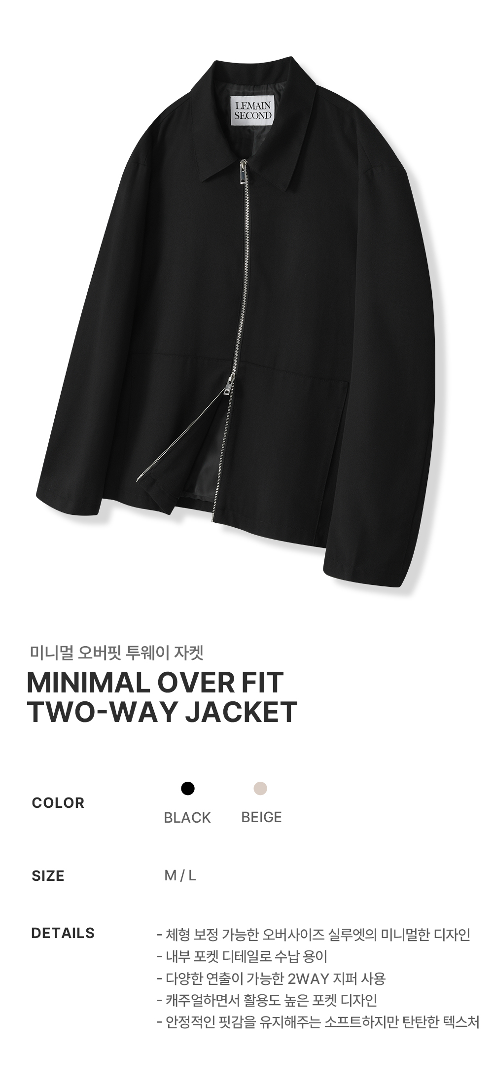미니멀 오버핏 투웨이 자켓 [블랙]