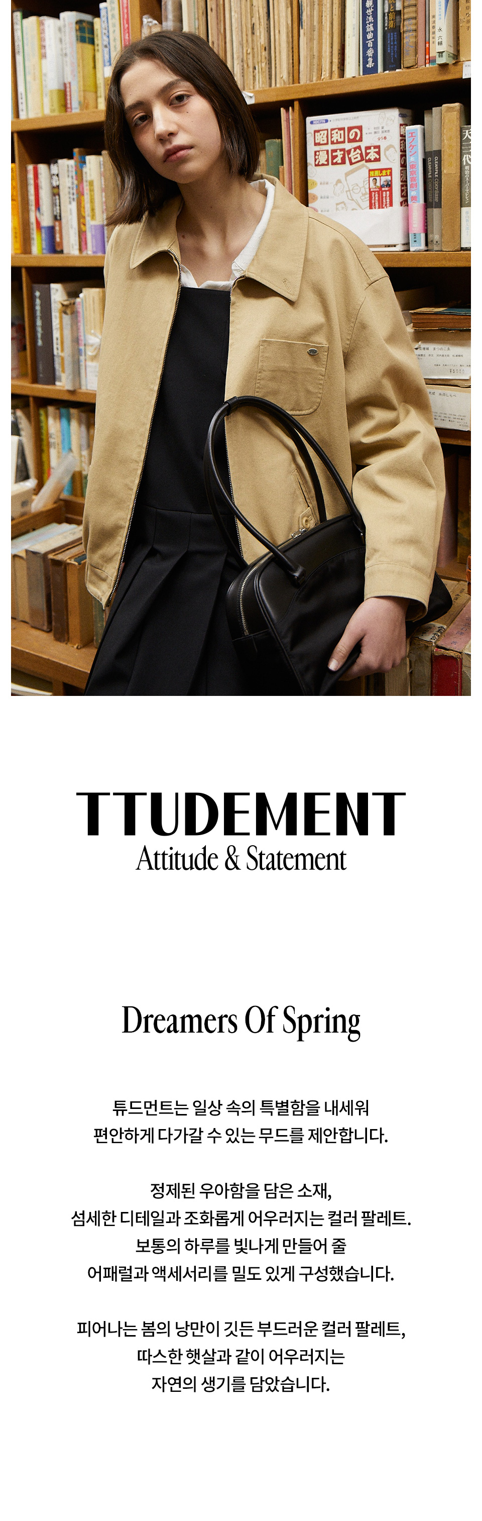 ATTITTUDE & STATEMENT 나만의 태도로 기억되는 브랜드 튜드먼트 입니다. 나이나 유행으로 정의되지 않는, 조용하지만 분명한 태도를 가지고 있는 모습을 담아 가볍고 깨끗한 실루엣, 과하지 않은 로맨틱함으로 완성되는 튜드먼트 만의 이야기를 담아냅니다