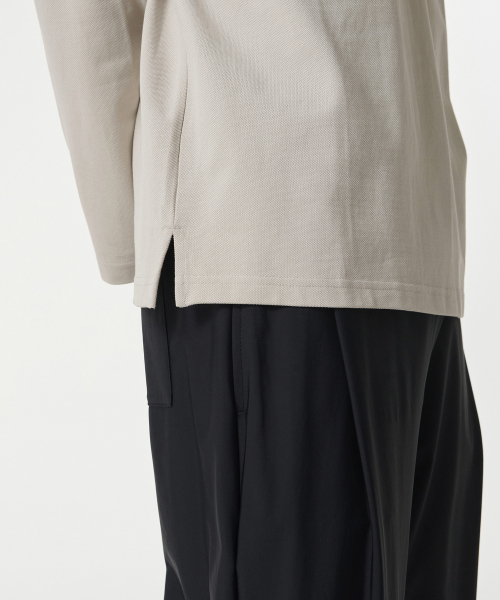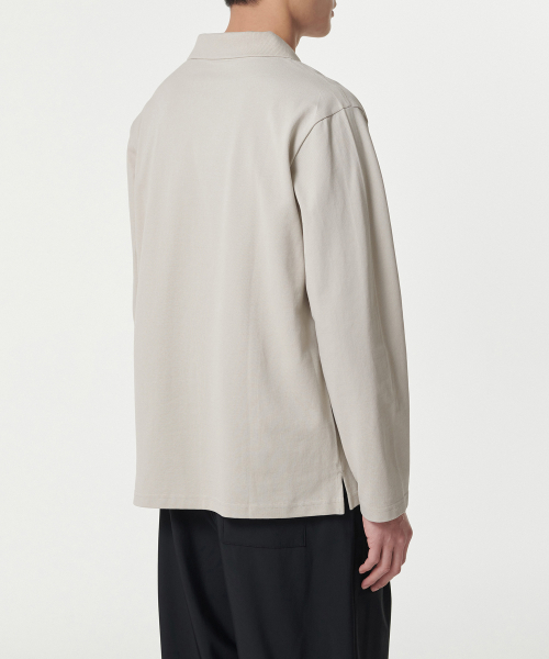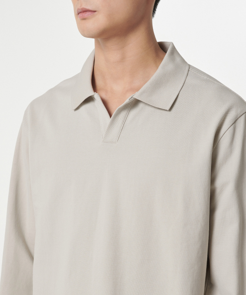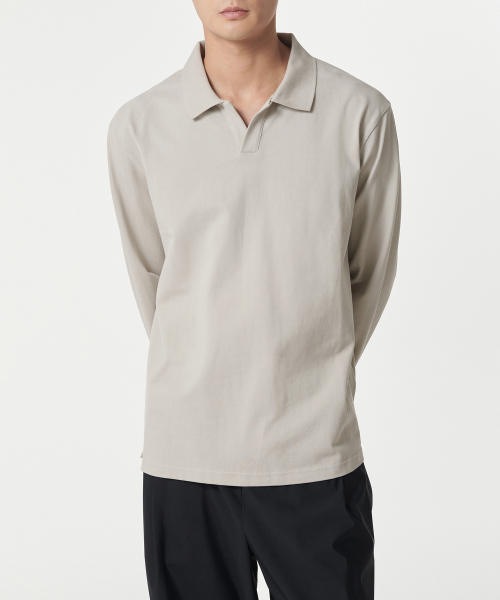 슬릿 넥 긴소매 피케 폴로 셔츠 [머쉬룸]