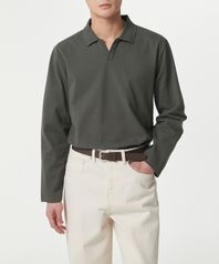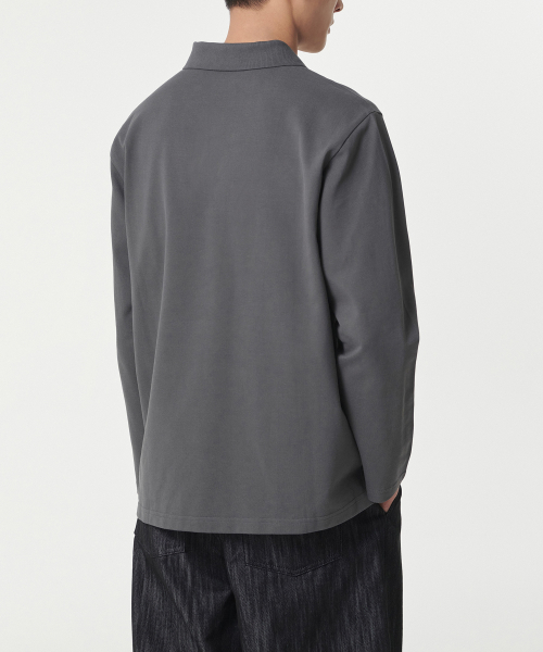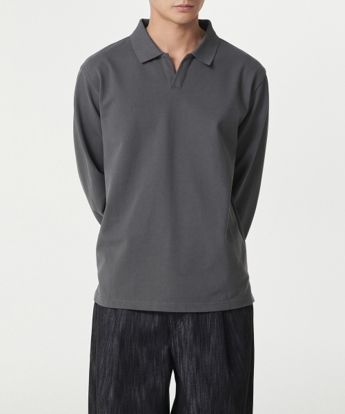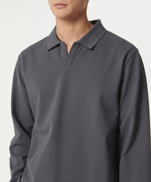 슬릿 넥 긴소매 피케 폴로 셔츠 [건메탈]